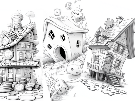 Game House Coloring Page – Printable (A4, Black & White PDF) by Wonder House