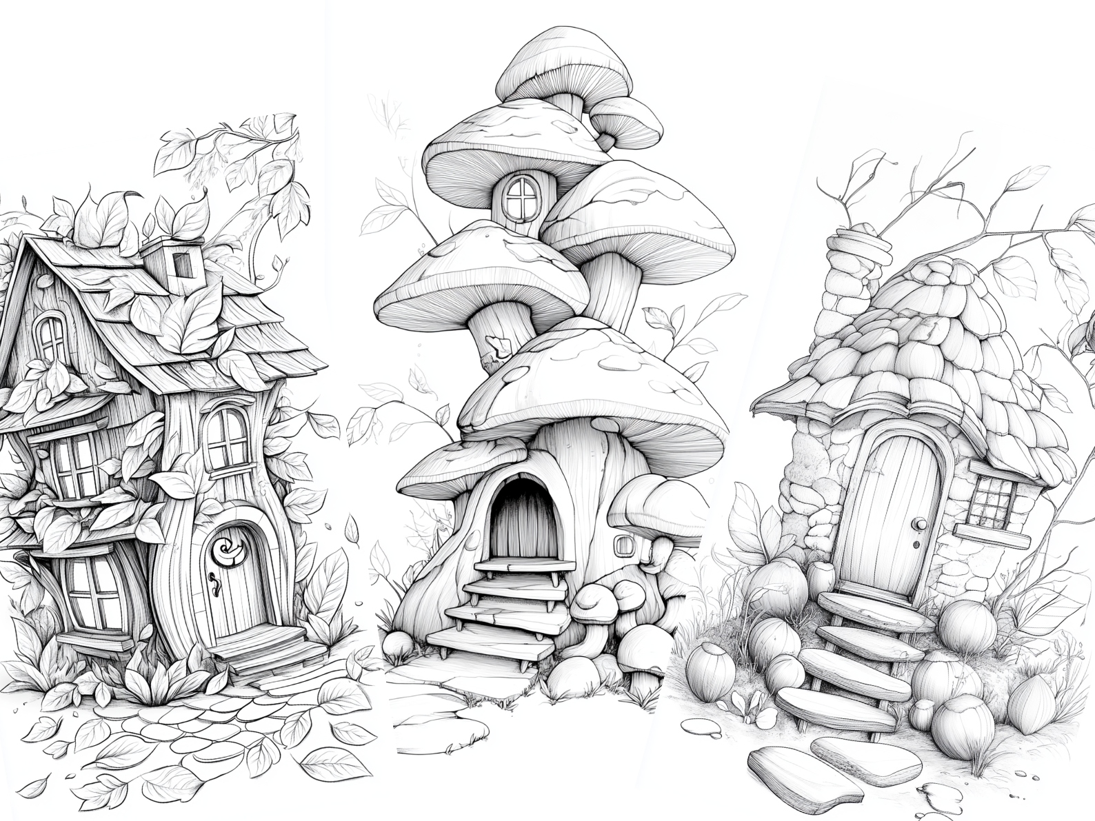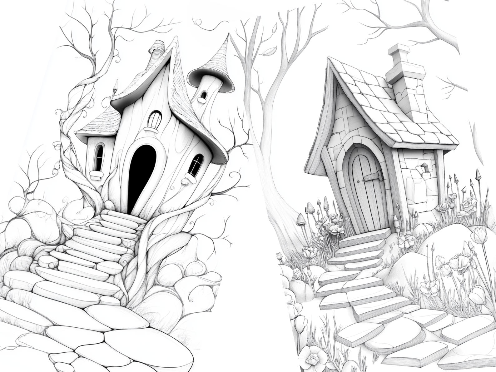 Forest House Coloring Page – Printable (A4, Black & White PDF) by Wonder House