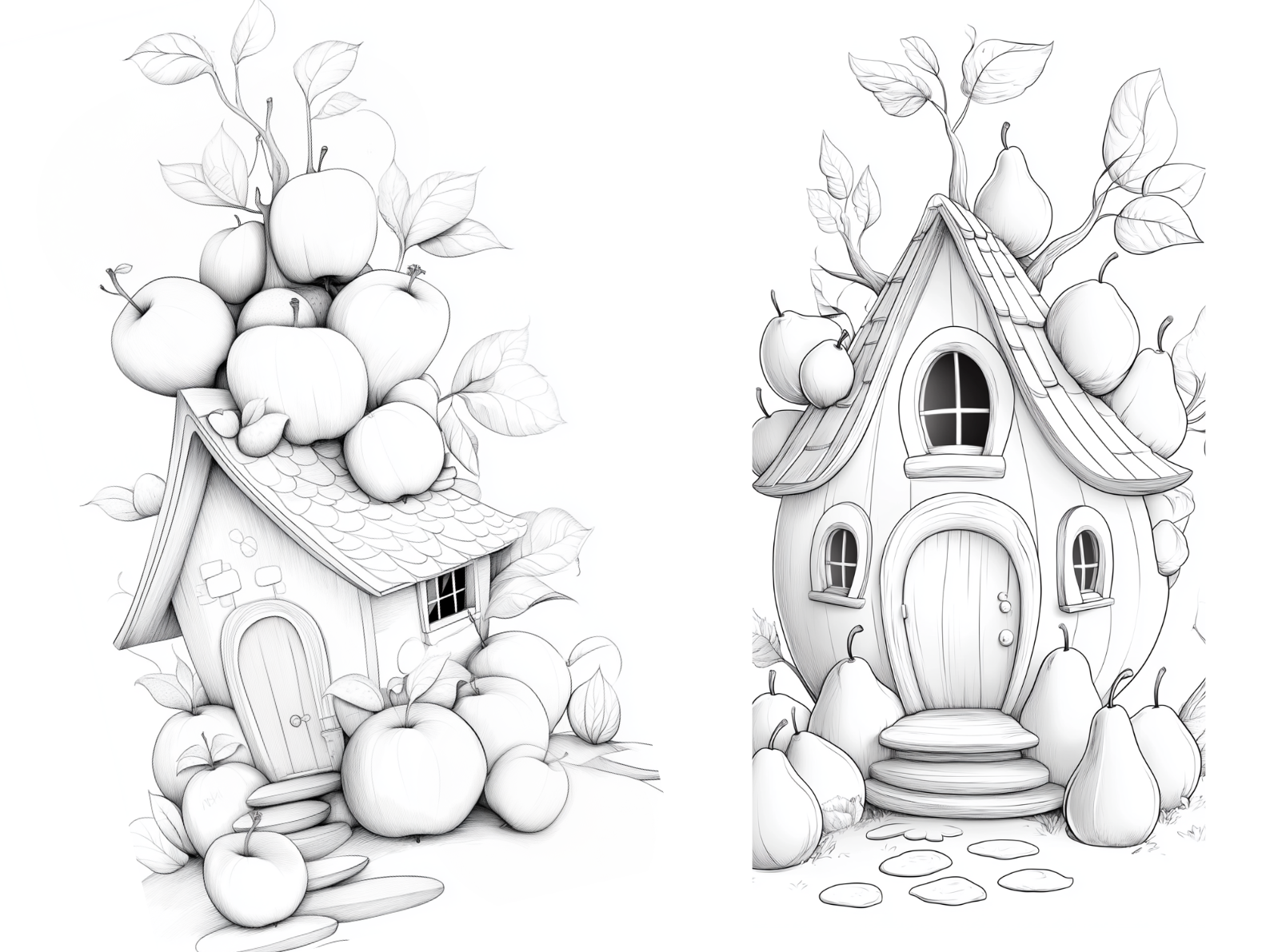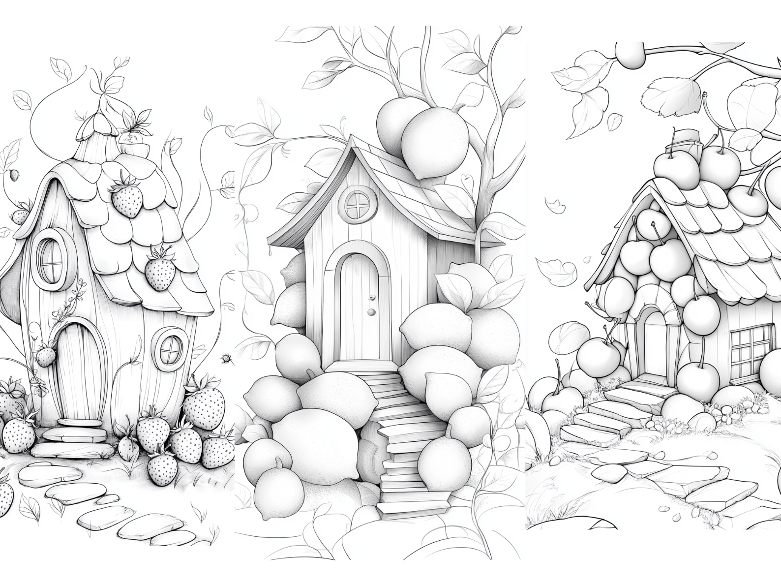 Fruit and Berry House Coloring Page – Printable (A4, Black & White PDF) by Wonder House