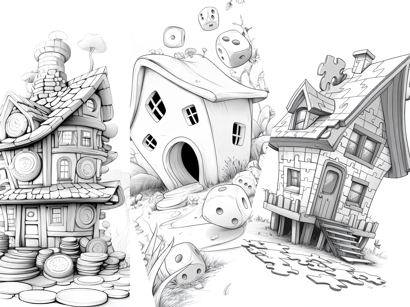 Game House Coloring Page – Printable (A4, Black & White PDF) by Wonder House
