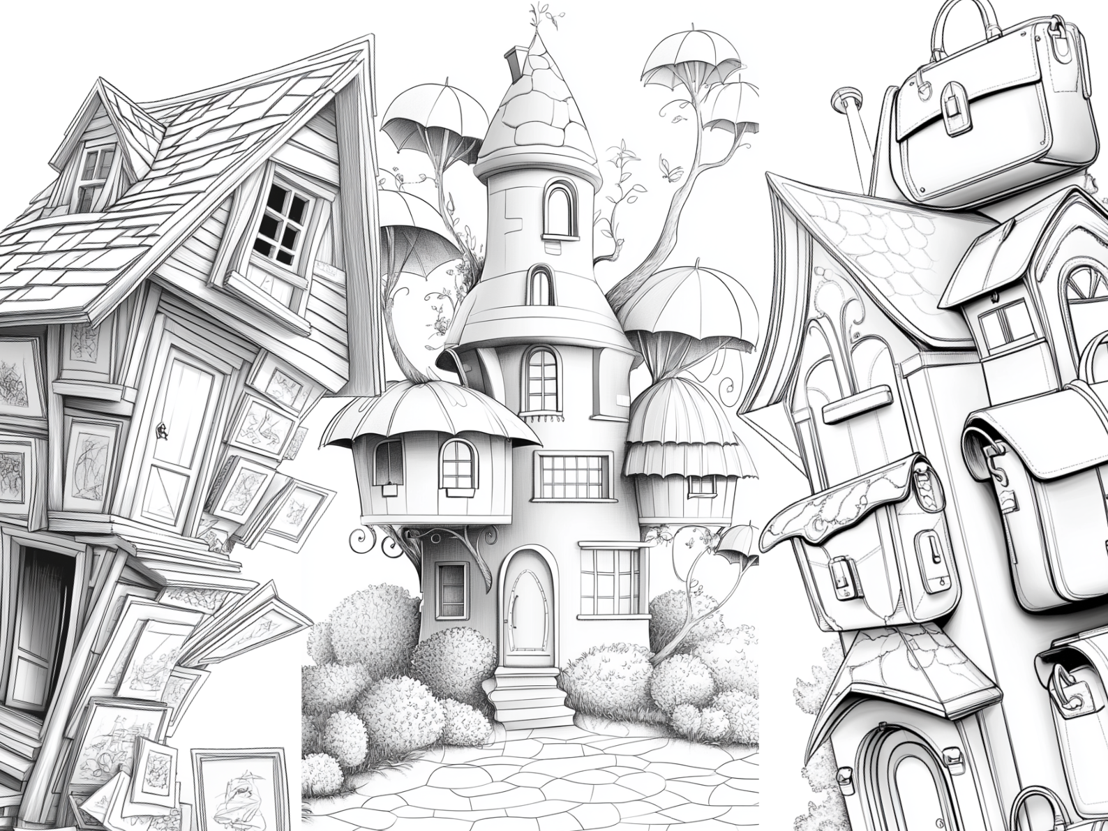 Accessories House Coloring Page – Printable (A4, Black & White PDF) by Wonder House