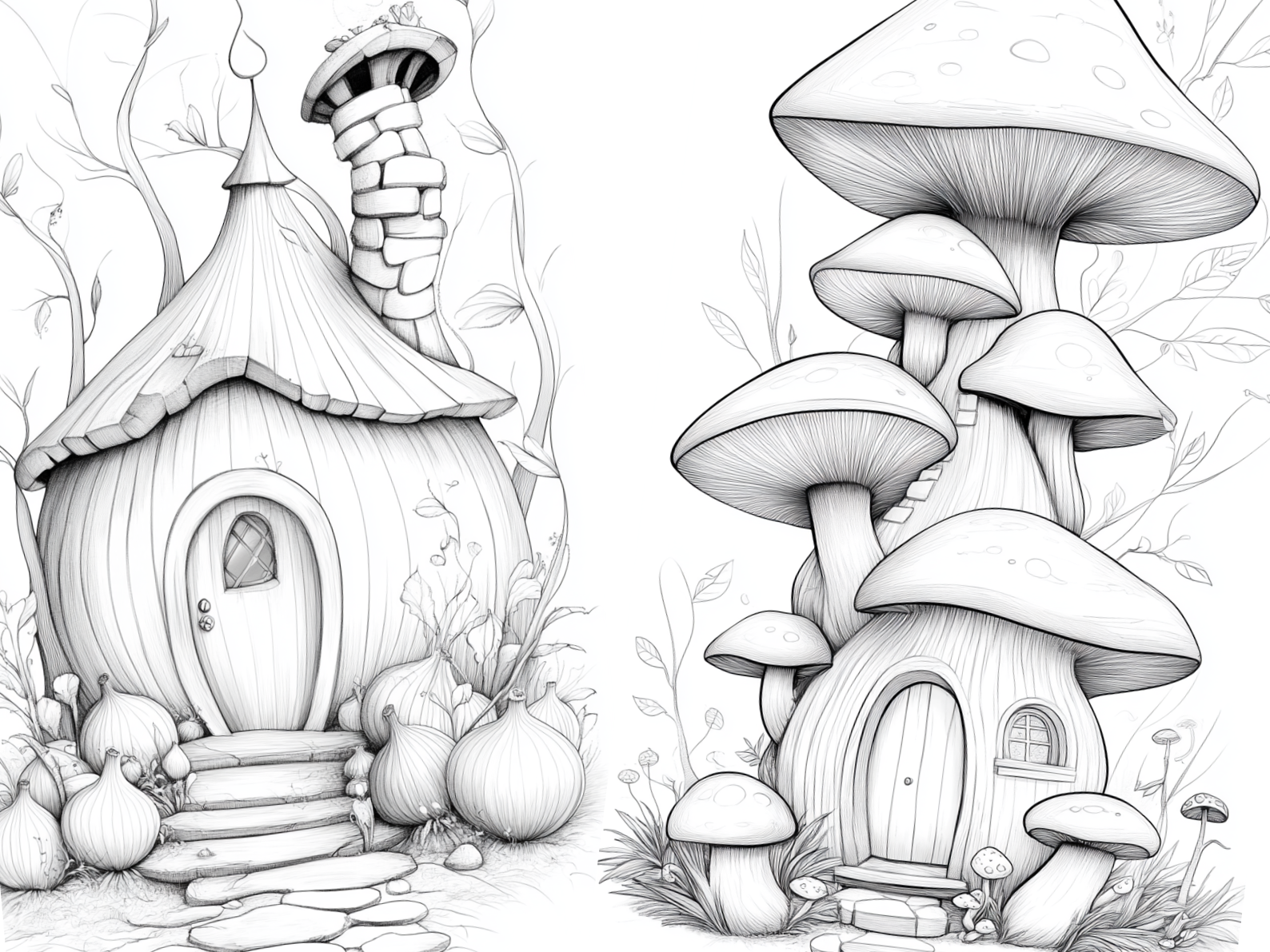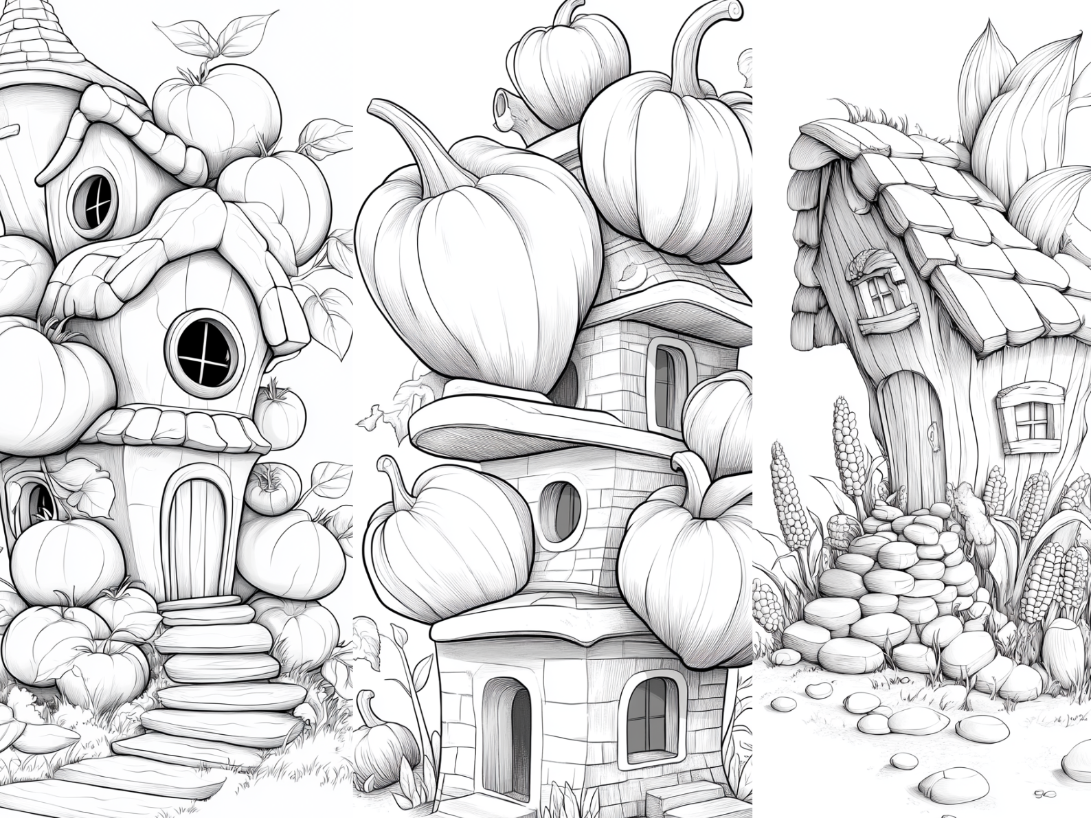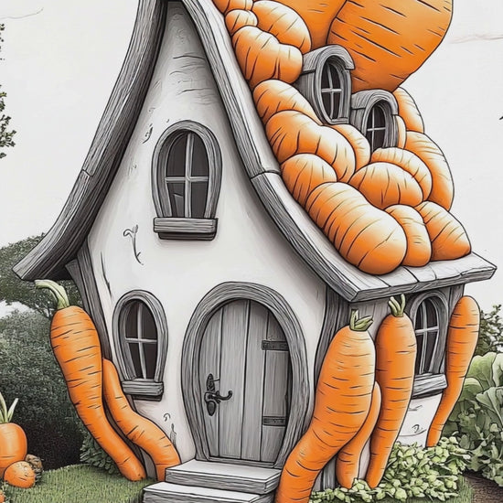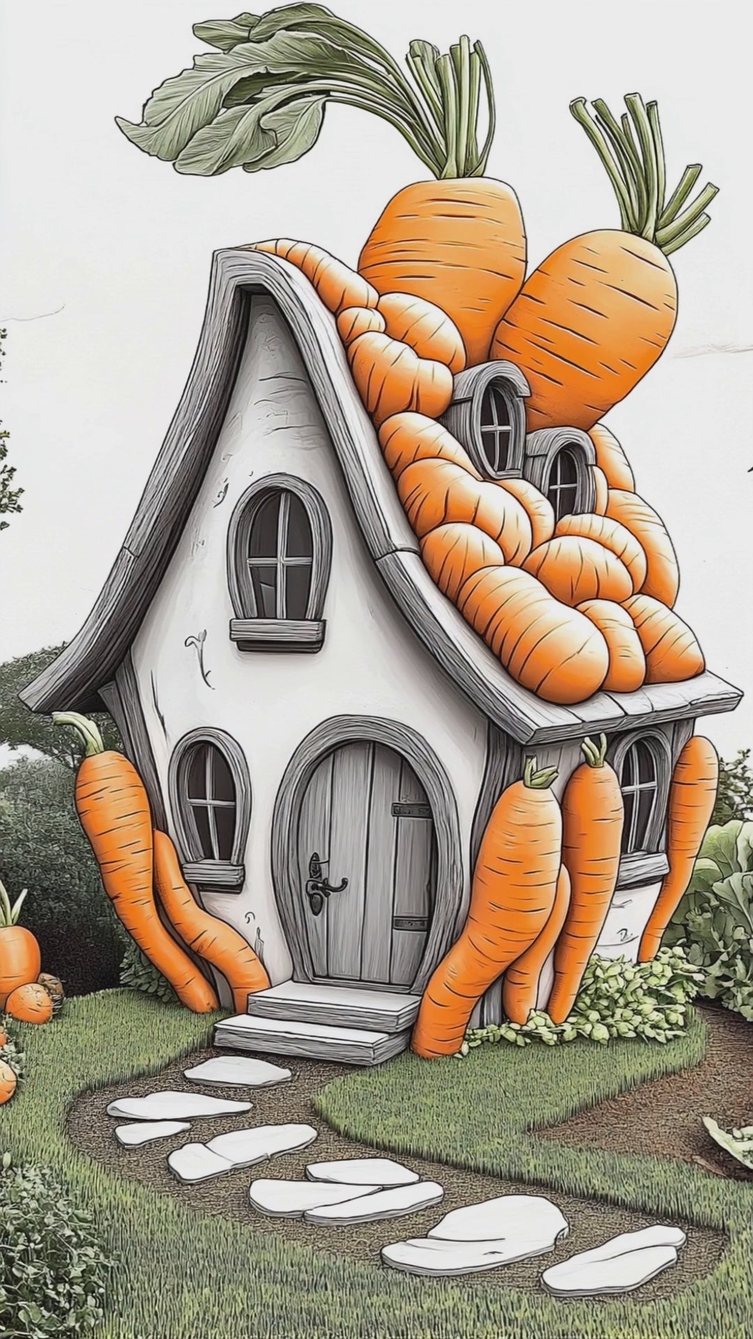 Vegetable House Coloring Page – Printable (A4, Black & White PDF) by Wonder House